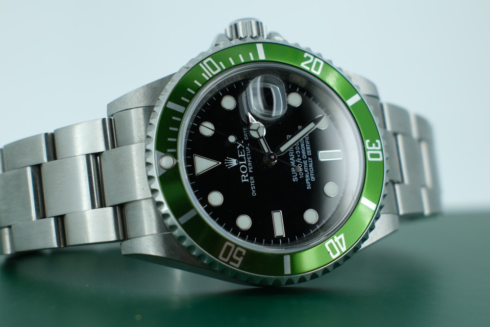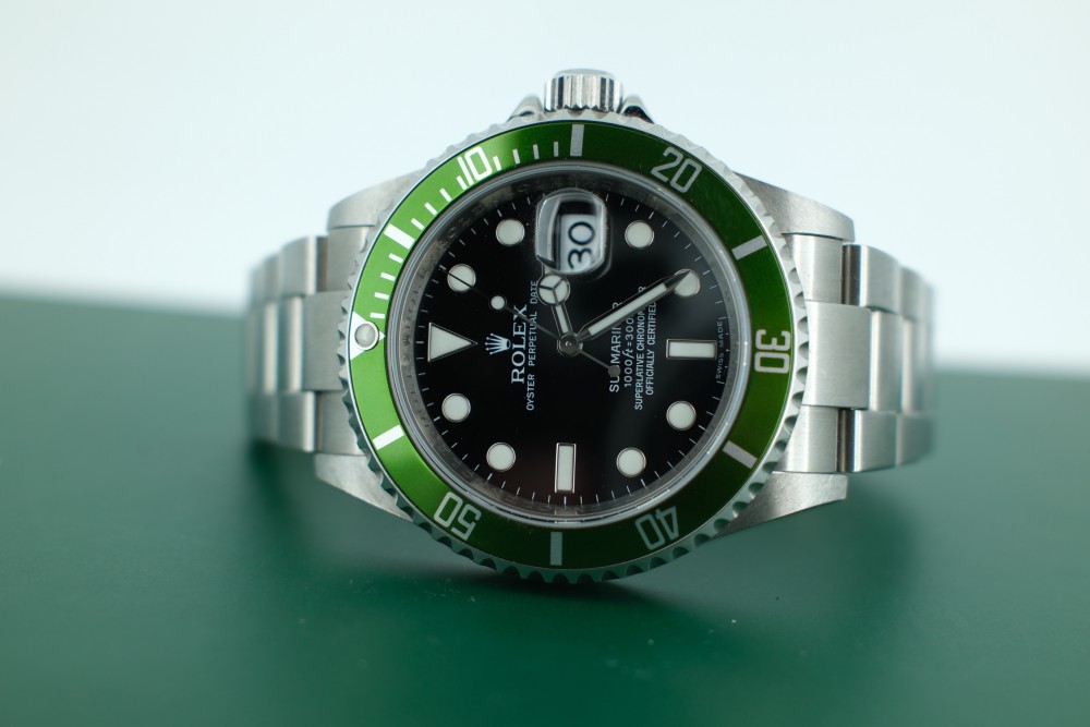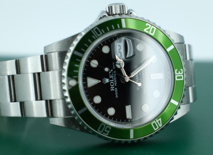 Model: 16610 LV Submariner "Kermit", box, card and booklet & Unpolished. M serial